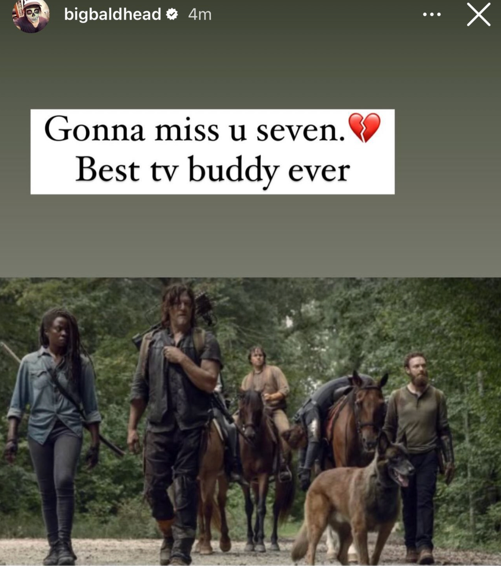 Upon hearing of Seven's passing, Reedus posted images of him with his canine companion on set on his Instagram stories and wrote: