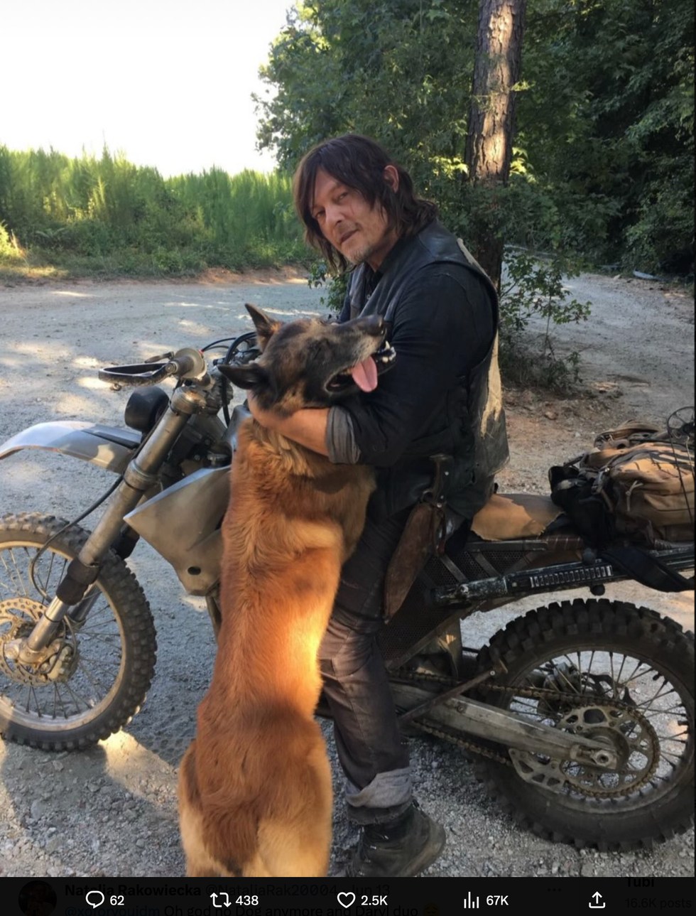 The late Belgian Malinois's character on the show was called Dog, and he was the companion to Reedus's character Daryl Dixon.