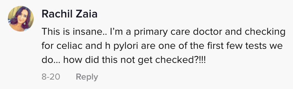 The doctor ran tests for food intolerances and a GI-Map test, which came back with a positive result for helicobacter pylori, SIBO, candida and leaky gut.