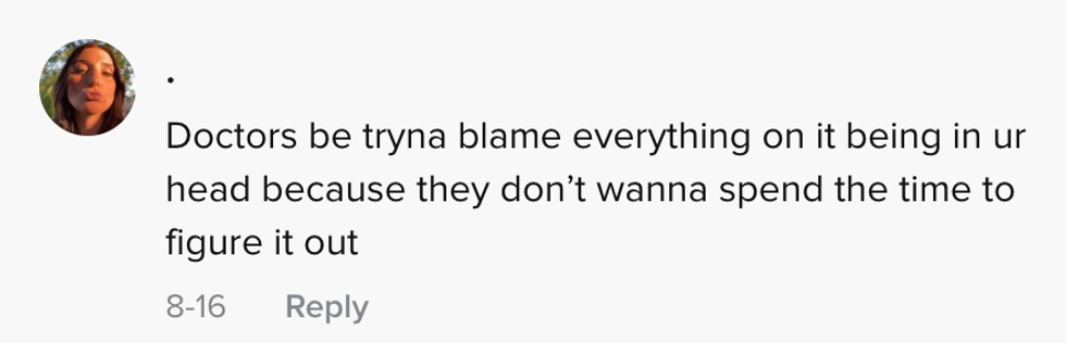 One doctor simply told her her symptoms were "psychosomatic," aka, all in her head.
