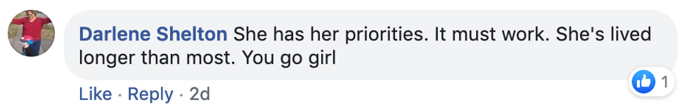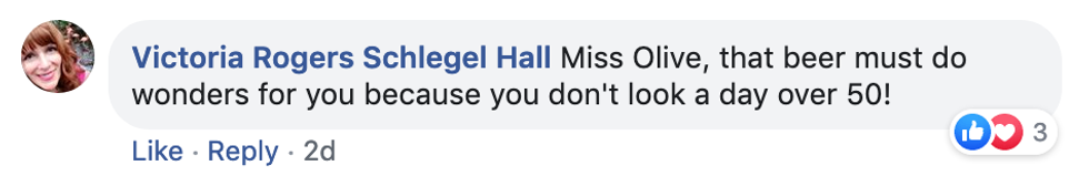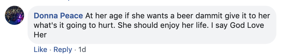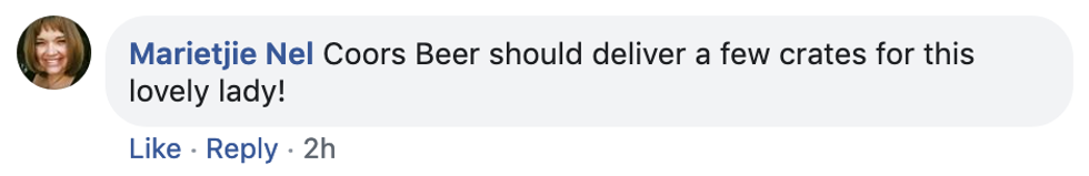 "I love it! Would someone go out and get her a case of Coors Light! God Bless her."