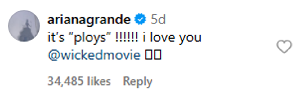 "It's 'ploys'! I love you, Wicked Movie [team]."