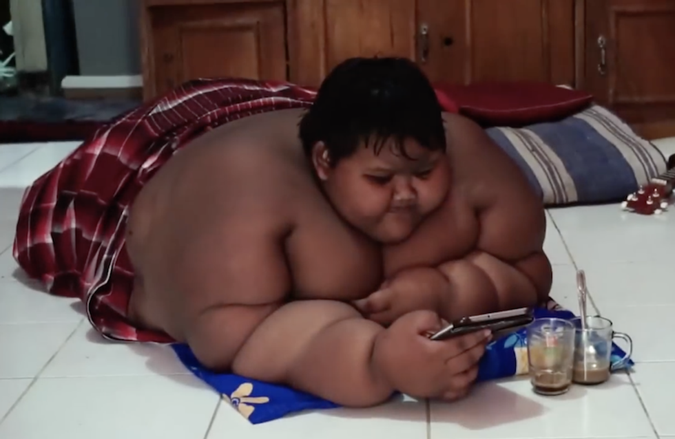 The boy's mother, Rokayah Somantri, 37, said that the boy was born healthy, but after turning 8 years-old, he gained a significant amount of weight.