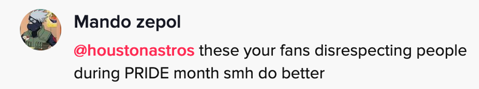 "Y'all can't let sh*t like this slide," she addressed the Astros directly, adding, "I'm not blaming the team… I'm still gonna go to Astros games… But y'all need to do better and treat that as a profanity," she says in the video."