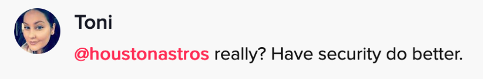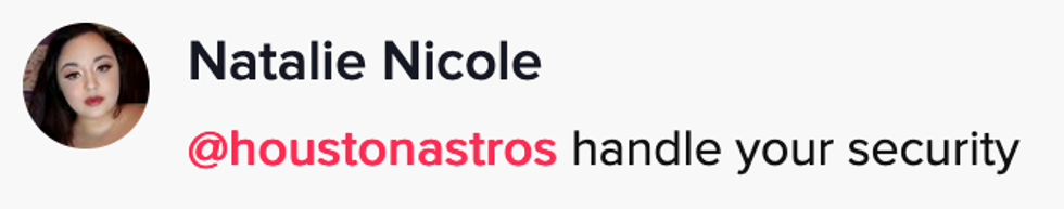 "… Minute Maid park doesn't have a tiktok that's why i tagged astros we love them but security failed my friends… so it'll reach whomever it needs."