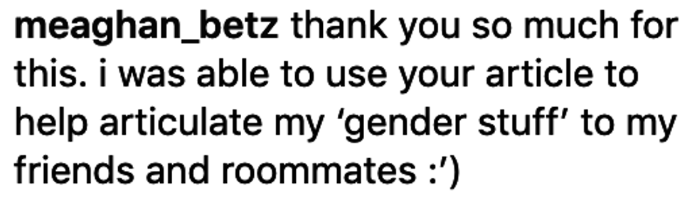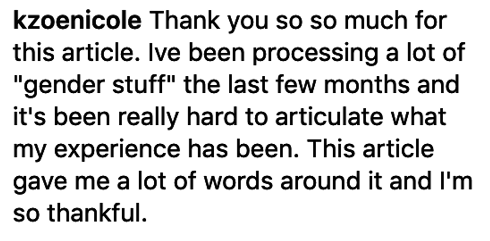 A few Instagram users commented that Allen's essay helped them to articulate their own "gender stuff."
