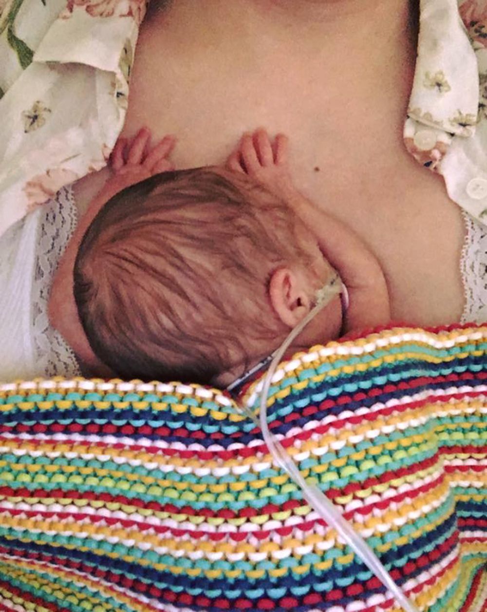 "It was scary," she said. "She was so small she was the size of a Mars bar. Her skin was sticky because she was so premature and her eyes were sealed shut. But we were so bonded. I was crying and thinking, 'We've done it.'"