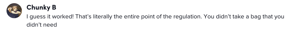 Finally, people asked why this concept seemed new to him and suggested that he get on board with much of the rest of the world and get a reusable bag to carry around.