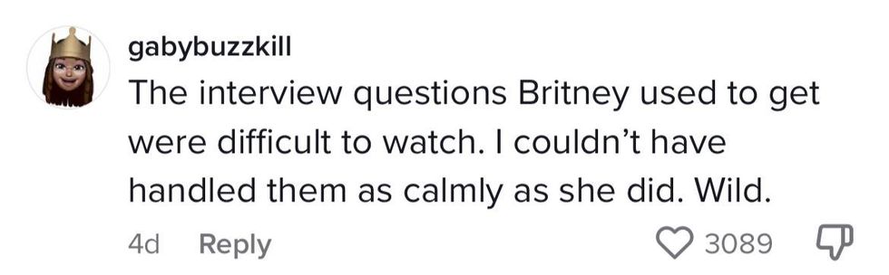 Many comments acknowledged that these sorts of cringe worthy questions were common for Spears to get in interviews.