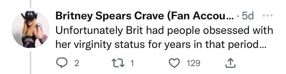 \u201cThis is one of the rare occasions when an interviewer actually defended Britney Spears when she was asked an inappropriate question. \ud83d\udc4f\ud83c\udffc\u201d— Britney Spears Crave (Fan Account) (@Britney Spears Crave (Fan Account)) 1671050724