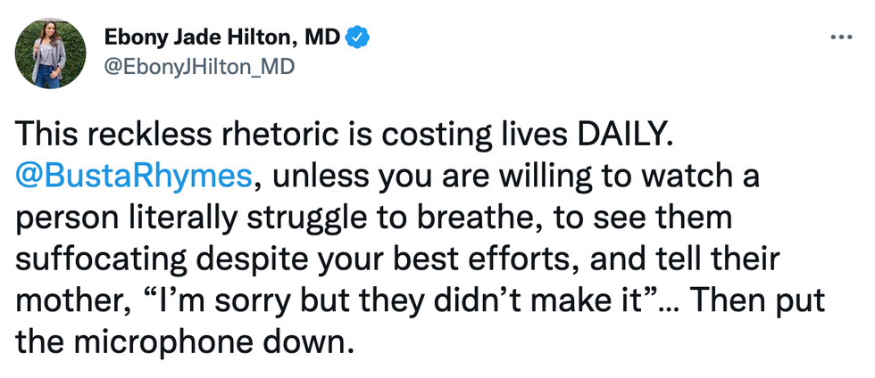 Twitter followers were quick to condemn Rhymes for his dangerous anti-mask propaganda, while also pointing out that there was zero scientific evidence in his speech, which was primarily centered around his own personal comfort.