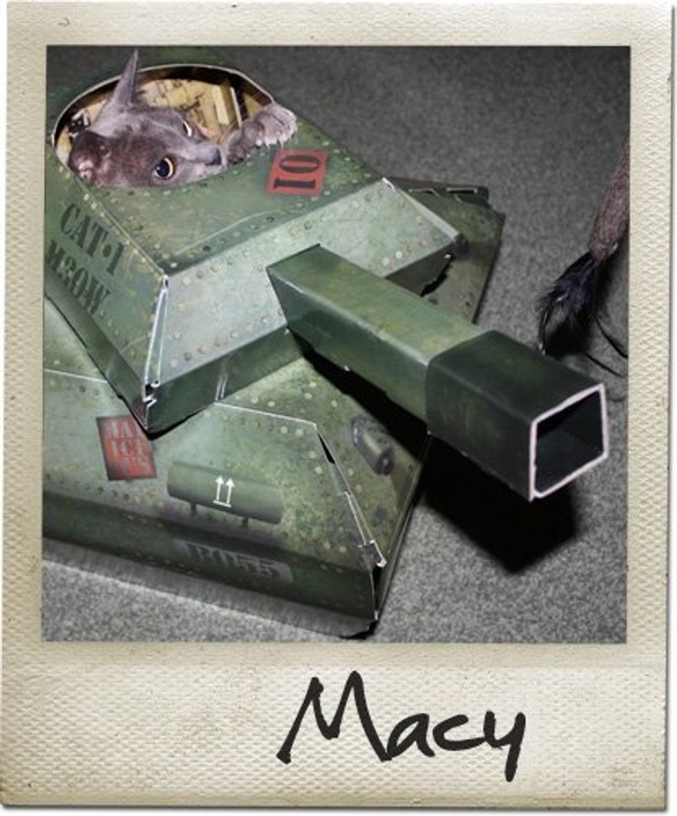 No cat owner can deny the joy their whiskered friend would feel behind the wheel of a cardboard war machine!