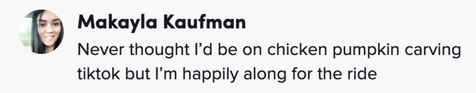 Lissie's posts inspired other TikTokers to try the pumpkin/chicken challenge, including @aquahediondalagoon–who went even further with her intricate design.