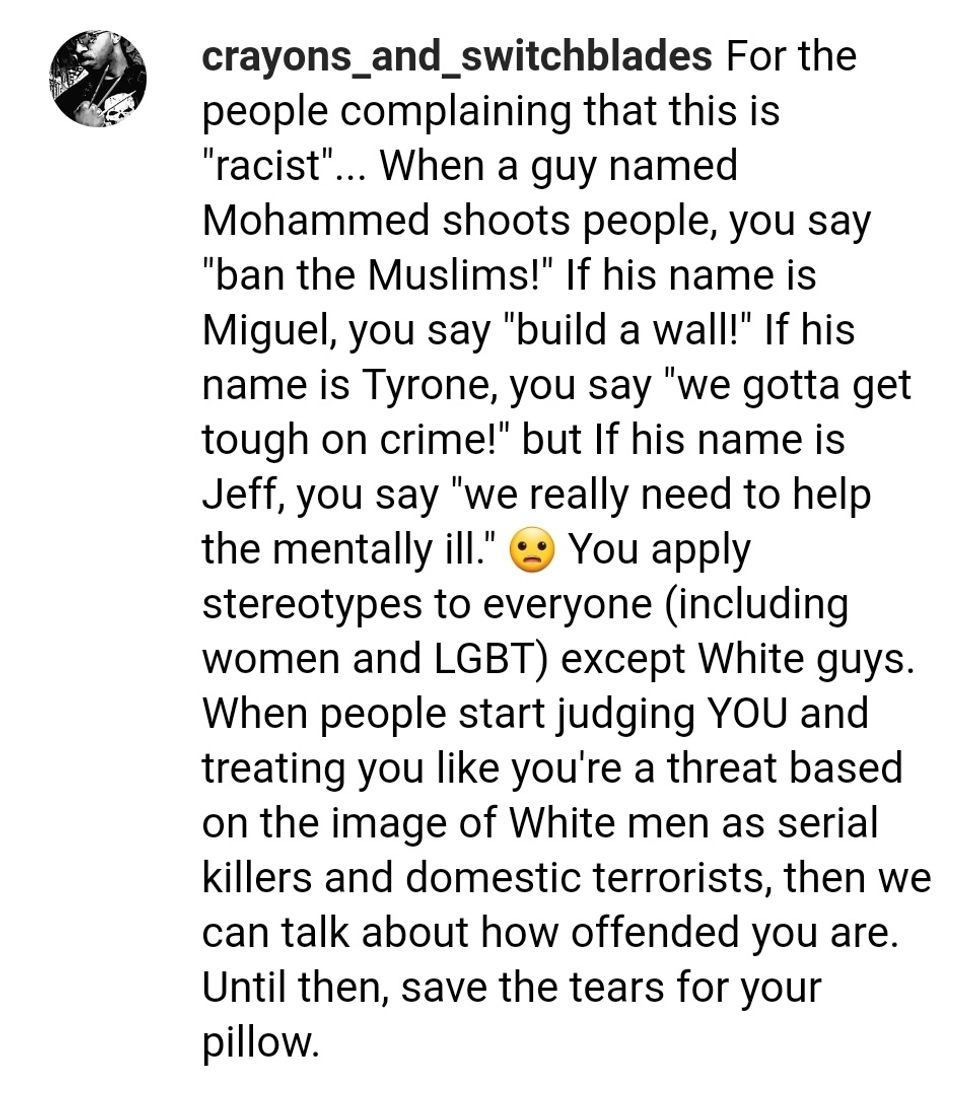 Unless you're out here posting the same outrage when it's all people of color being targeted, your argument about stating a fact about a small, specific group of White people lacks merit.