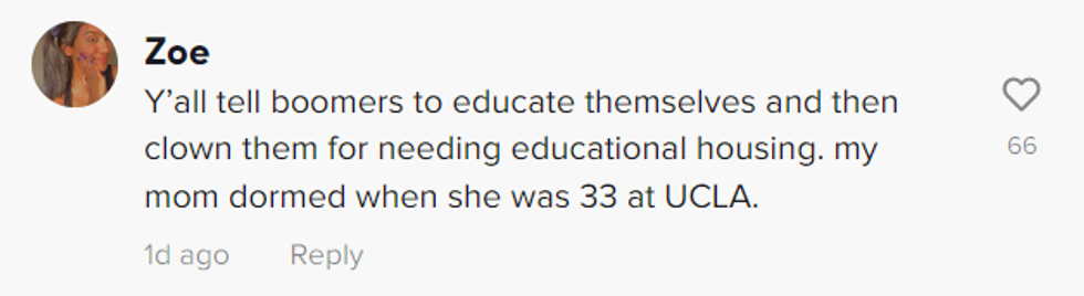 It came as a shock to 18-year-old "Felicity" of @thefelicitybost on TikTok, when she found out that her college roommate was going to be a woman in a whole other decade of her life, at the age of 52.