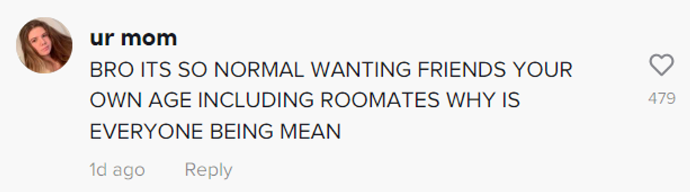 "Nothing against people of that age at all, I just feel uncomfortable having a roommate that's old enough to be my grandmother..."