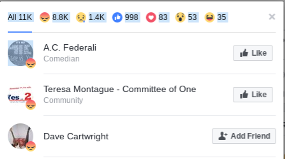 Over 10,000 negative reactions versus only about 1,000 positive ones by Tuesday morning and continued to get worse throughout the week.