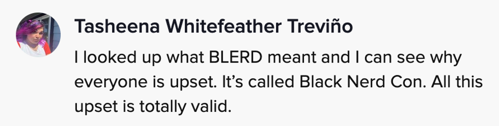 TikToker @capnkenknuckles clarified in her video, "I'm not against White people being at Blerdcon."