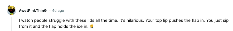 Regardless of the flexibility of your imagination, many social media users couldn't unsee it once their eyes locked on the image of the phallic cup lid, prompting nervous smiles.