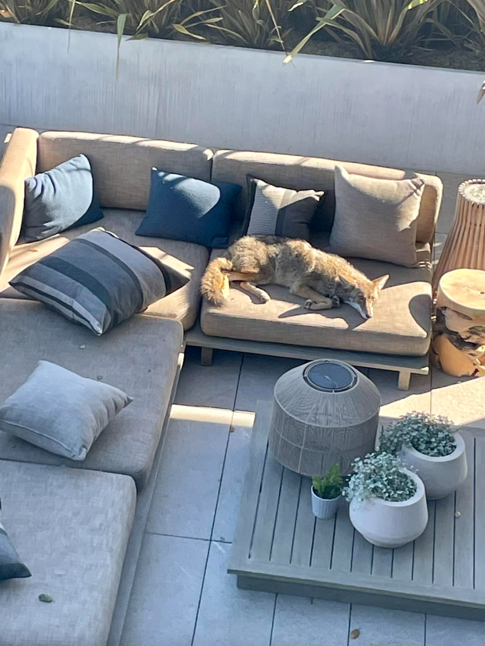 A coyote was spotted making himself comfortable out on the patio of a San Francisco residence, and did not want to leave anytime soon.