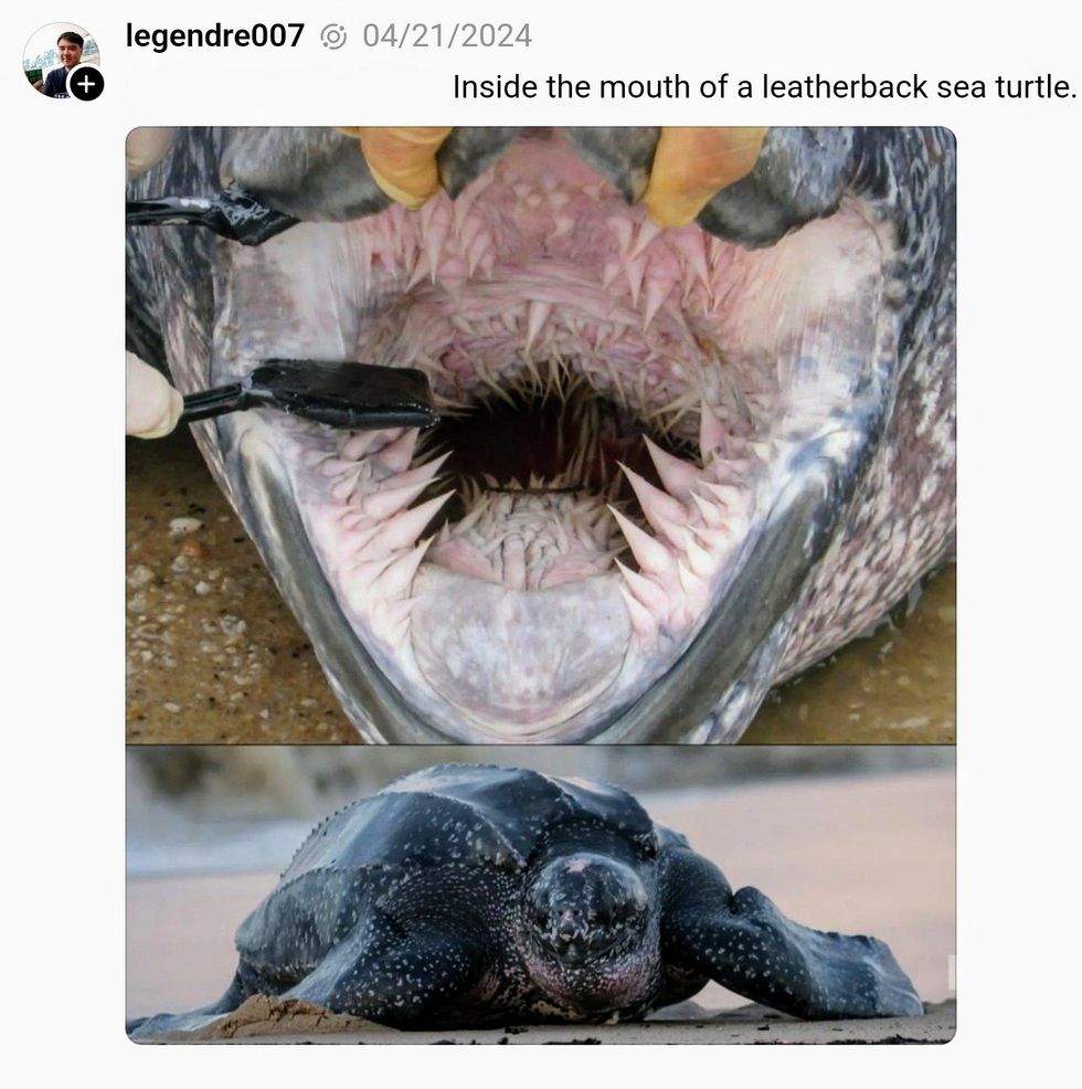 "The inside of a sea turtle's mouth/throat looks like something straight out of a horror movie monster. Absolutely covered in spines."