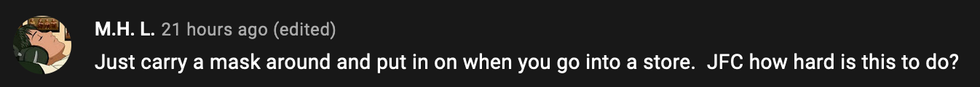 "No he didn't! You're the one who doesn't want to wear a mask right now. We're all wearing masks. We're all complying."