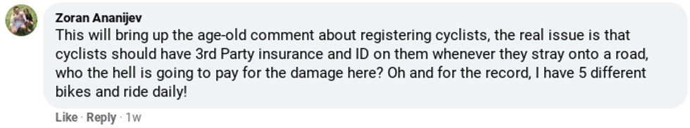 Some also discussed the importance of everyone on the road having some form of insurance, whether everyone had traditional car insurance or if cyclists had their own.