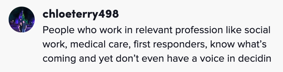 She concluded the video expressing that while "nursing is hard enough as it is," she couldn't imagine having to watch people suffer "as these decisions are made about their body."