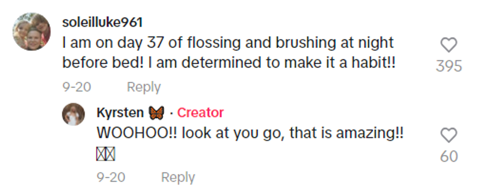 Kyrsten also wanted to offer some words of encouragement for those just starting on a flossing routine.