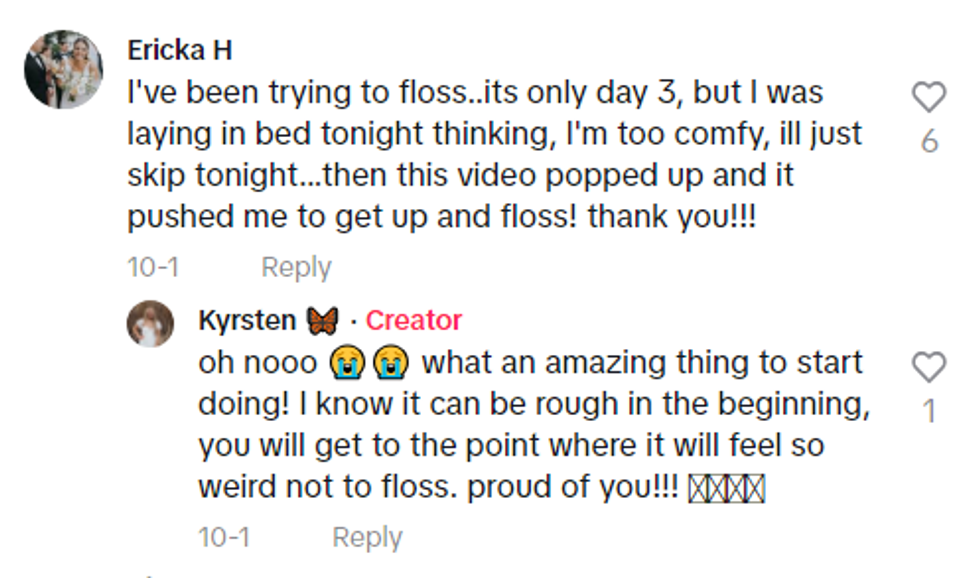 But some TikTokers celebrated how their flossing routine had significantly improved their dental health.