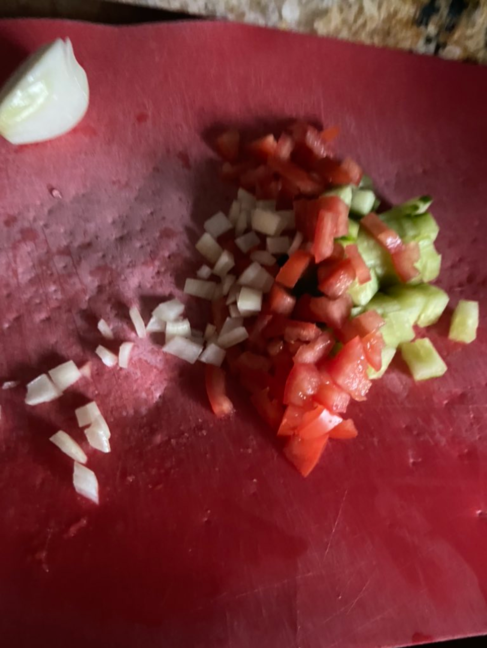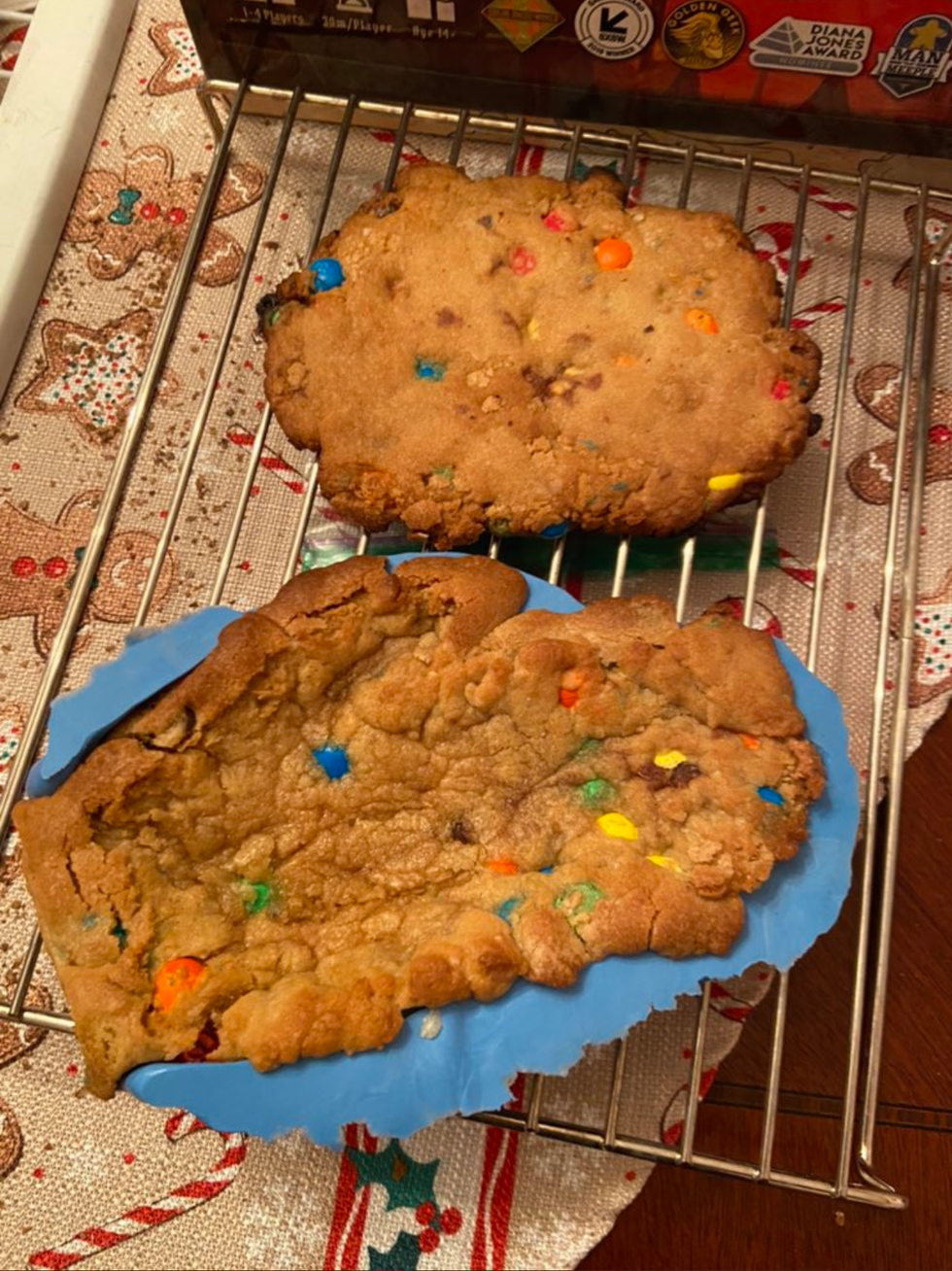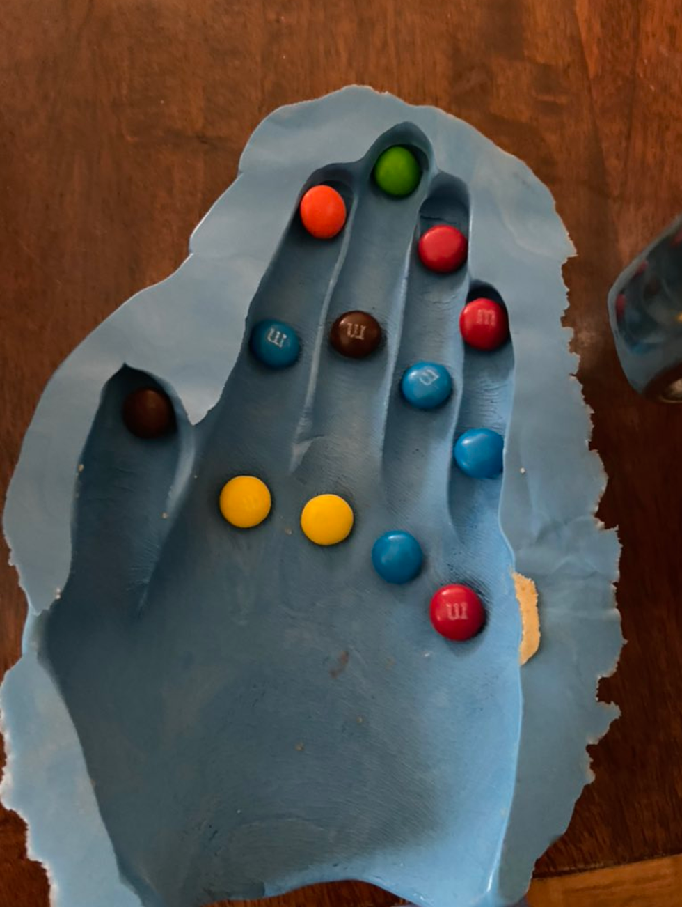 The dish took the shape of a hand "made of M&M cookie" and stuffed with, of all things, a Greek salad.