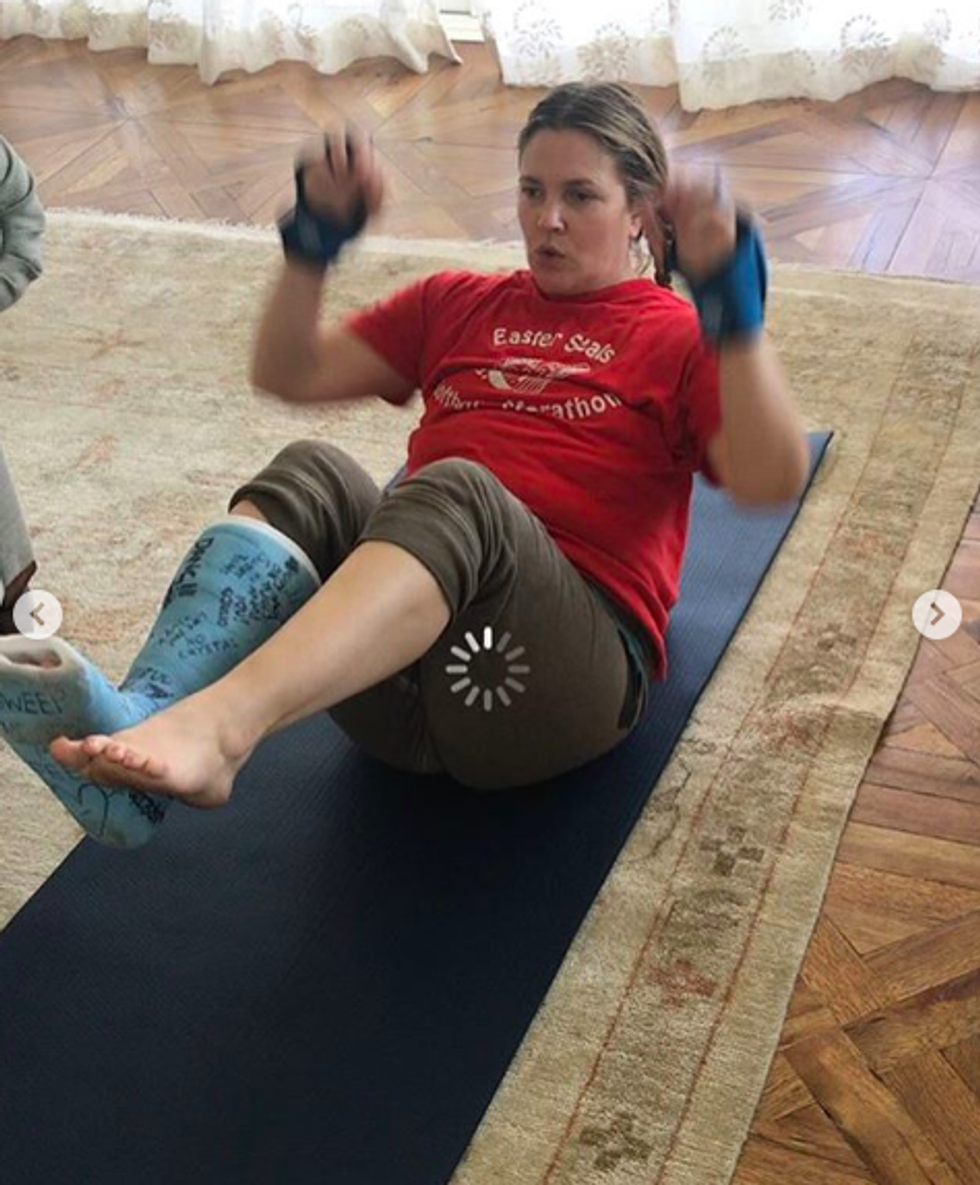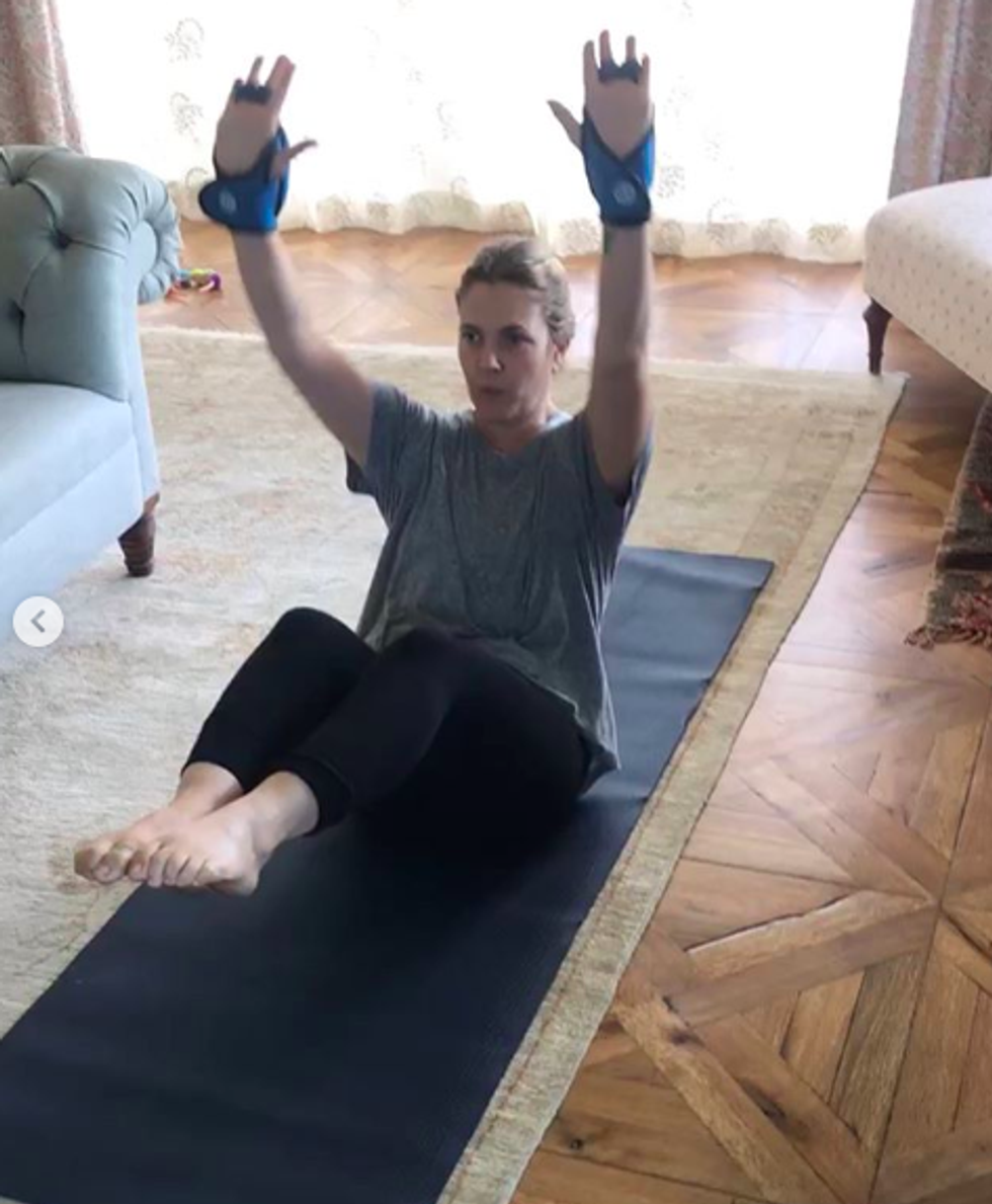 Another couple of photos provide snapshots into a tale of two workouts: One of Barrymore at the beginning of her health and fitness journey, the other of her after shedding the weight.