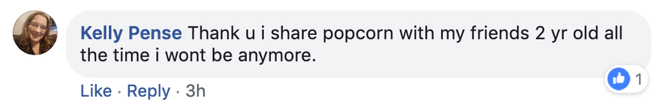 She later learned that the American Academy of Pediatrics classifies popcorn as a "high-risk food" for toddlers.