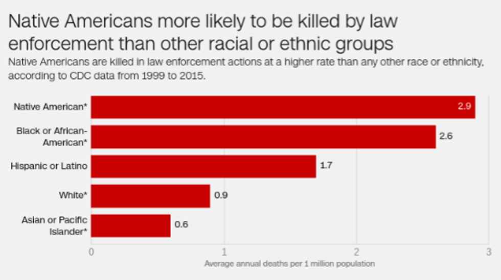 While Whites make up the majority of the population and would logically be at the top of related statistics due to sheer numbers, every analysis of deaths during interactions with law enforcement show that by percentage of population and percentage of deaths, Native American men and women are most likely to die during any interaction with law enforcement.