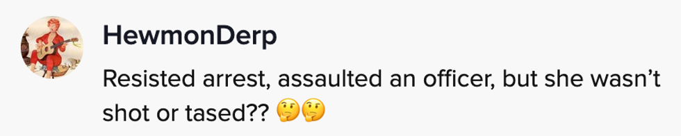 "She wouldn't take the ticket and assaulted the police officer...and littered," continued the narration. "But the cop got it to her anyways."