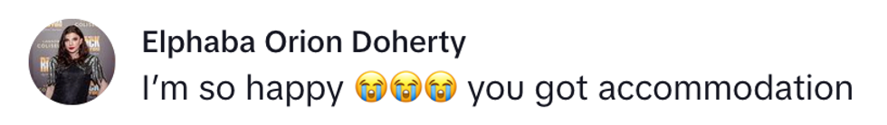 "I'll let you know how the meeting goes and there's no promises, but this is the first time they've considered me for accommodation so thank you, thank you so much. I love you all."