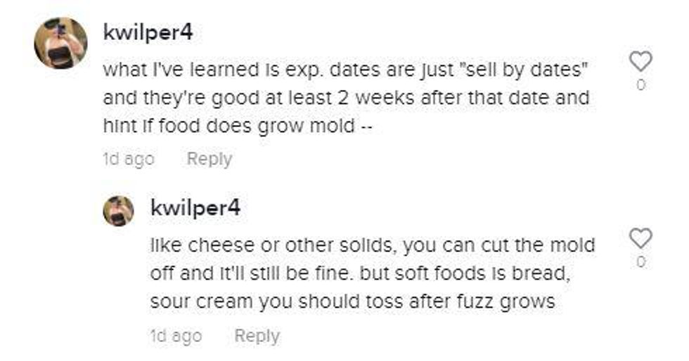 The TikTok was in response to another user, @rizzzy.rizzz, who refuses to eat any food item past the expiration date printed on the container.