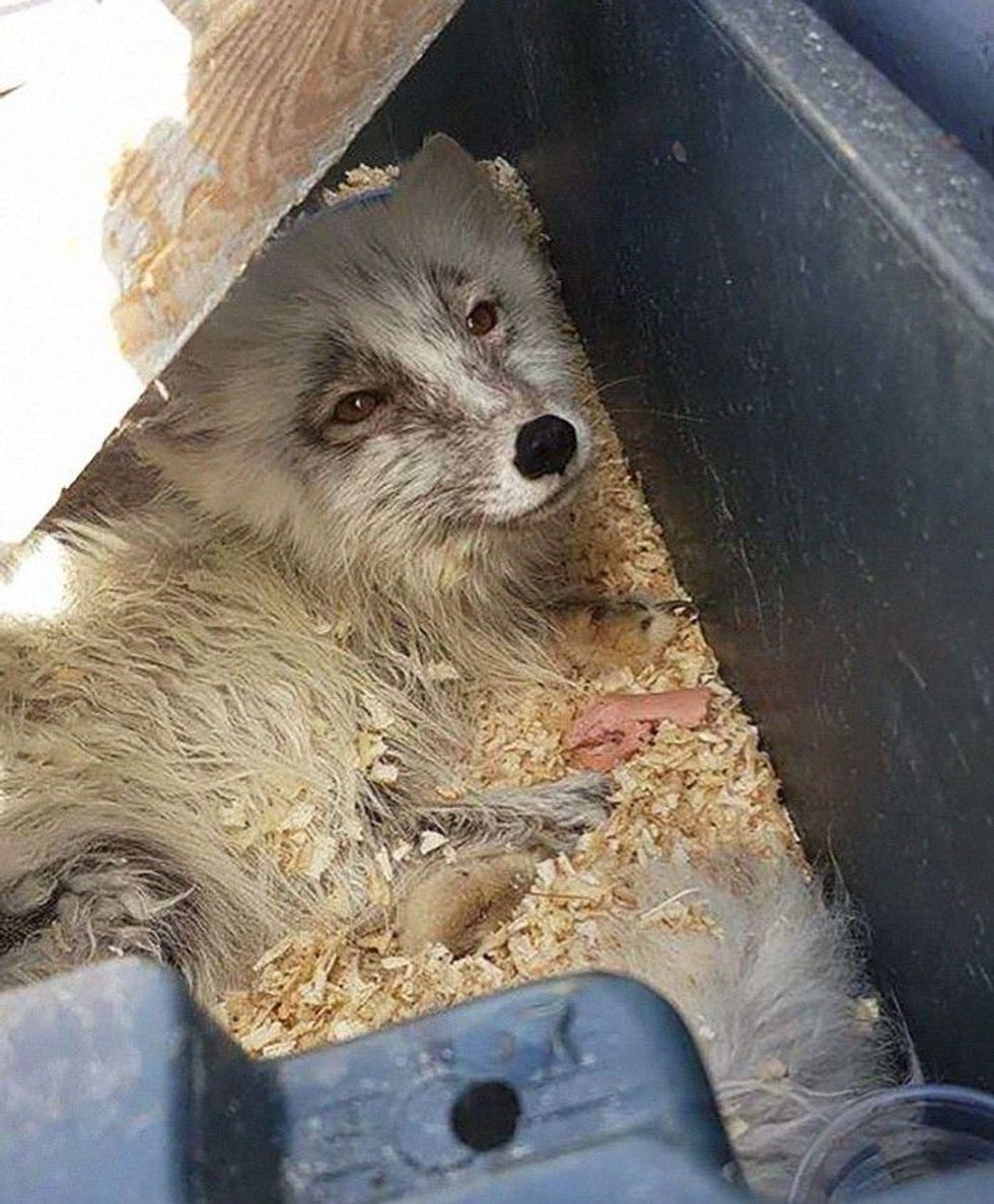 It took some coaxing, but eventually they got the fox on board and into a makeshift bed to warm up and dry off.