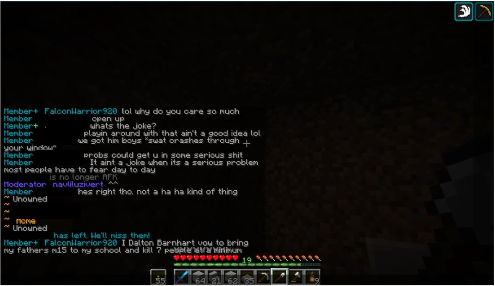 The 15-year-old, known as FalconWarrior920 on Discord, said in an online game of Minecraft: