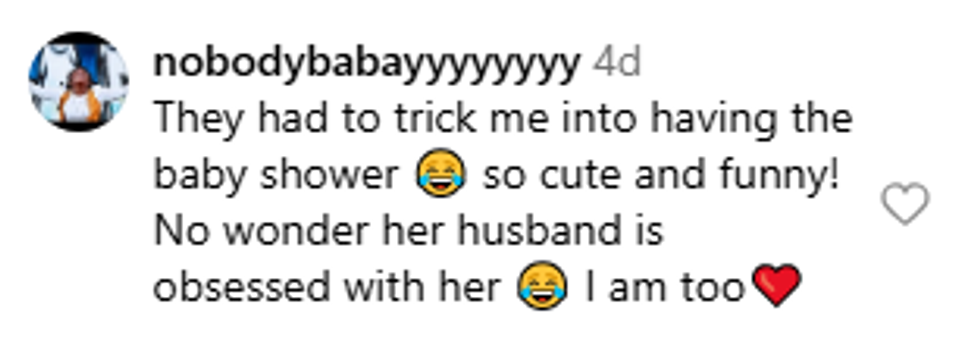 "And to be fair, they had to trick me into having a baby shower! I don't like parties."