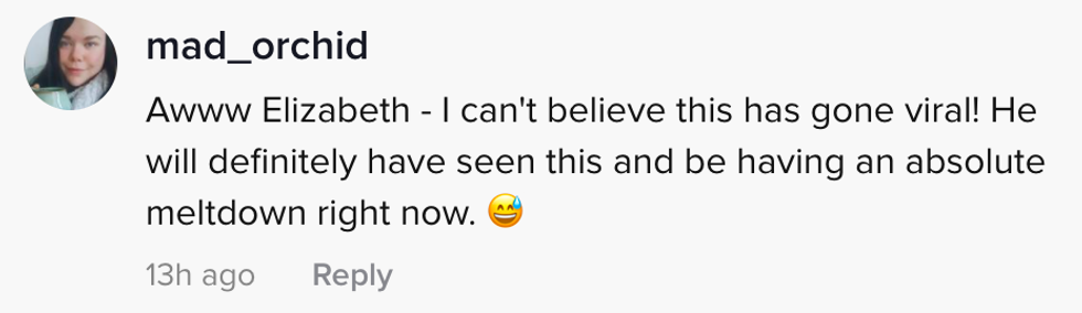 That is exactly what @elizabethlindsay3 on TikTok received from her cheating ex-husband's other woman one year to the day after their divorce.