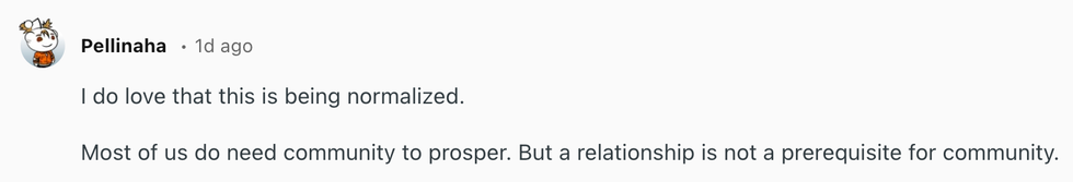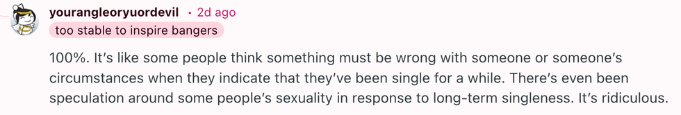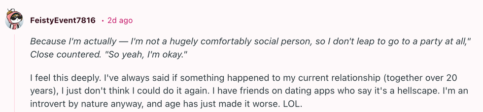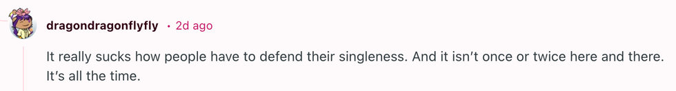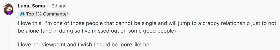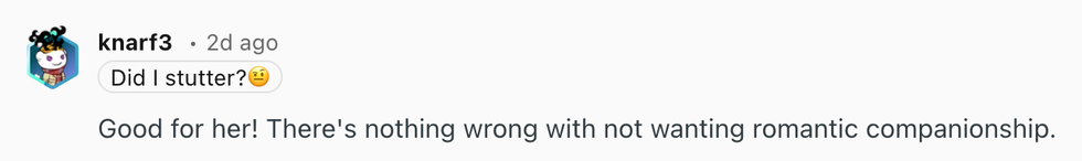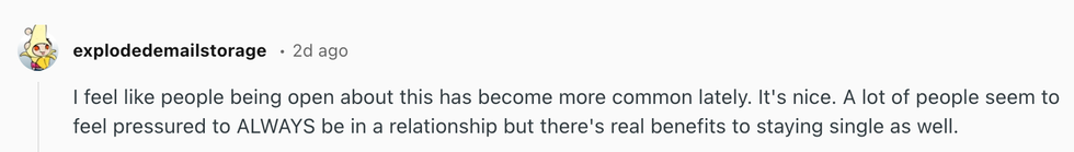 Readers in the pop culture chat subReddit admired Close for her stance on why she hasn't been in a rush to find love, and those who felt seen raised a toast.