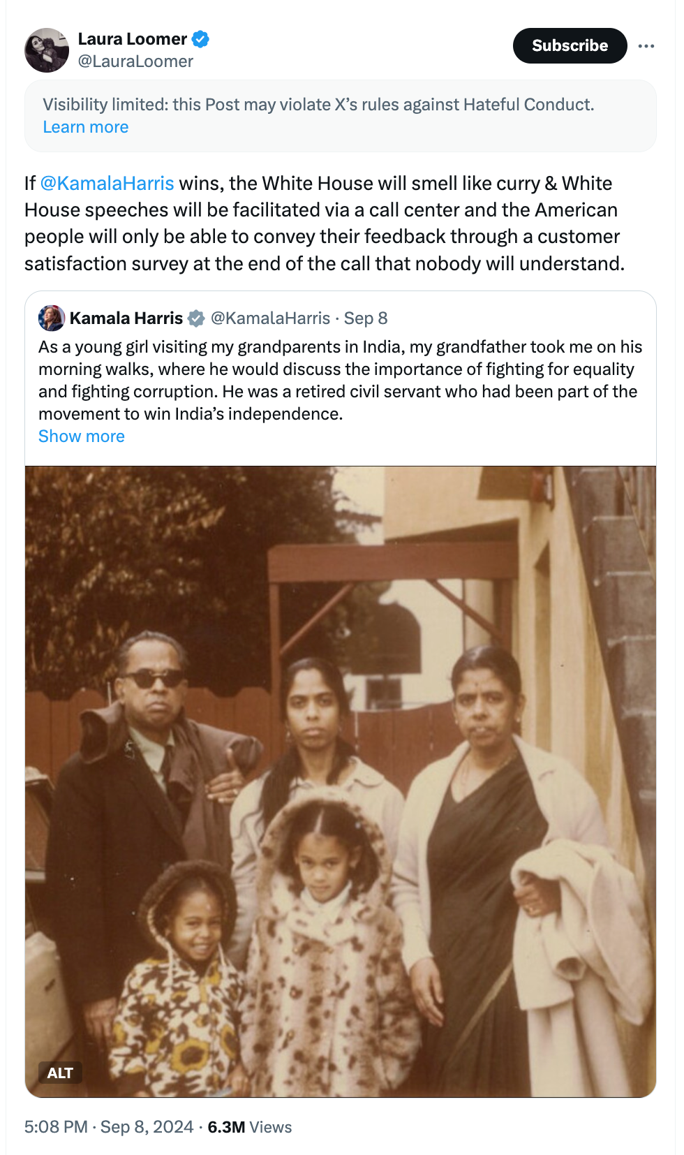 After far-right activist Laura Loomer posted a disgustingly racist post on X about the White House smelling "like curry" if Vice President Kamala Harris is elected, Georgia Republican Representative Marjorie Taylor Greene of all people actually spoke out to call her comments "appalling."