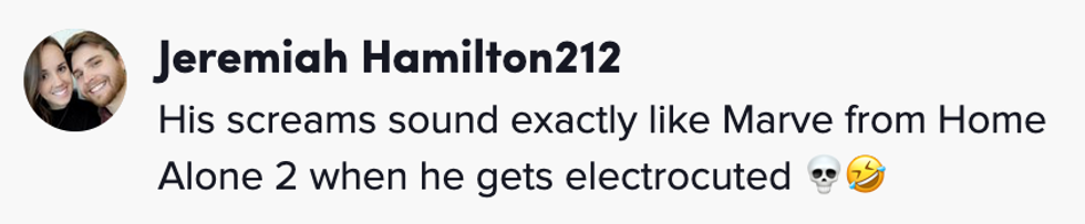 His prolonged shriek of terror from seeing the tiny critter was everything.