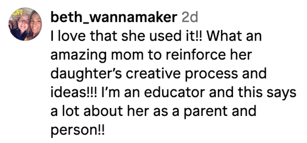 And because her daughter wasn't aware of her mum's dress color beforehand, she came up with a clever solution to complement the aesthetic with varying color markings adorning the clutch, along with the word "epic."