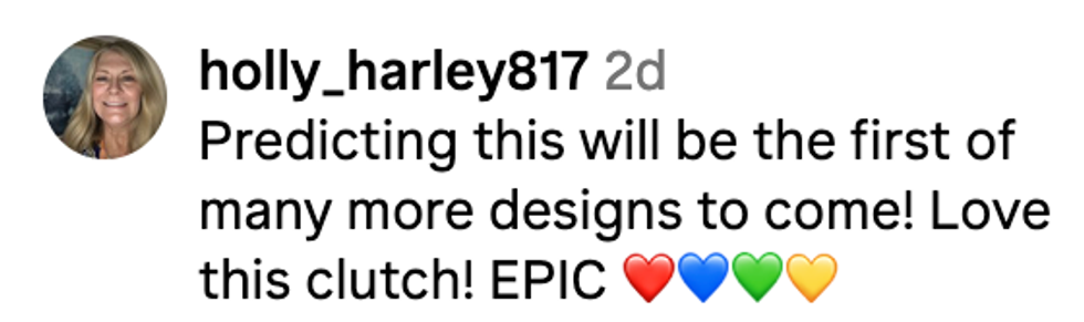 The young designer nailed it because the clutch was, in her words, an "it goes with everything and nothing bag."