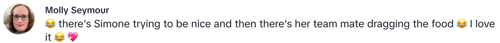 Biles' 16-year-old teammate Rivera, however, had a more blunt take on the cuisine, verbalizing what Biles was really thinking.