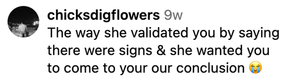 "There were signs, but we never said anything to you because until you know, it’s not fair to say anything to you either."
