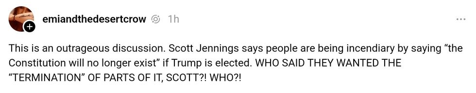 Jennings accused Democrats of portraying Trump as a threat to democracy, saying: