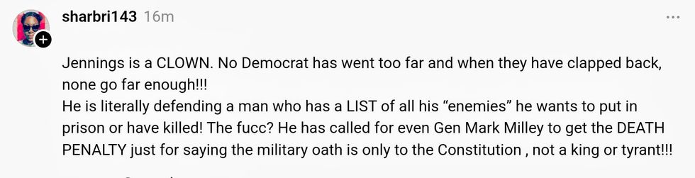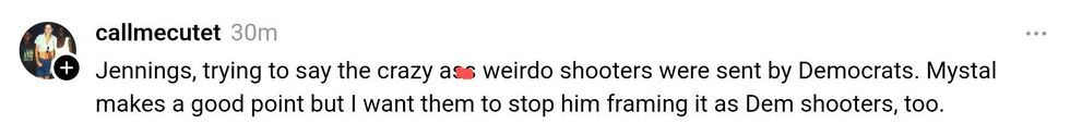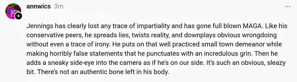 Others also pointed out the obvious projection in Jennings' complaints about Democratic rhetoric.